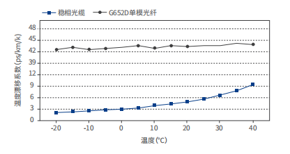 单模光纤&稳相光缆温度漂移系数随温度变化曲线
