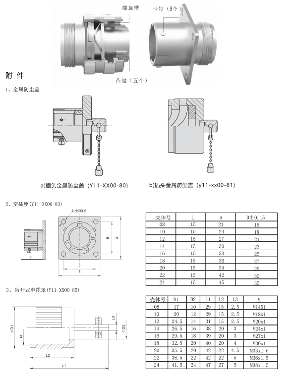 Y11系列圆形电连接器符合GJBIOIA-1997标准,适用于战略式器系统、航天卫星系统、航空航海运输工具、地面发射和接收系统高、能高热工业系统、通讯和测试系统、工交电力系统等的电信号连接。