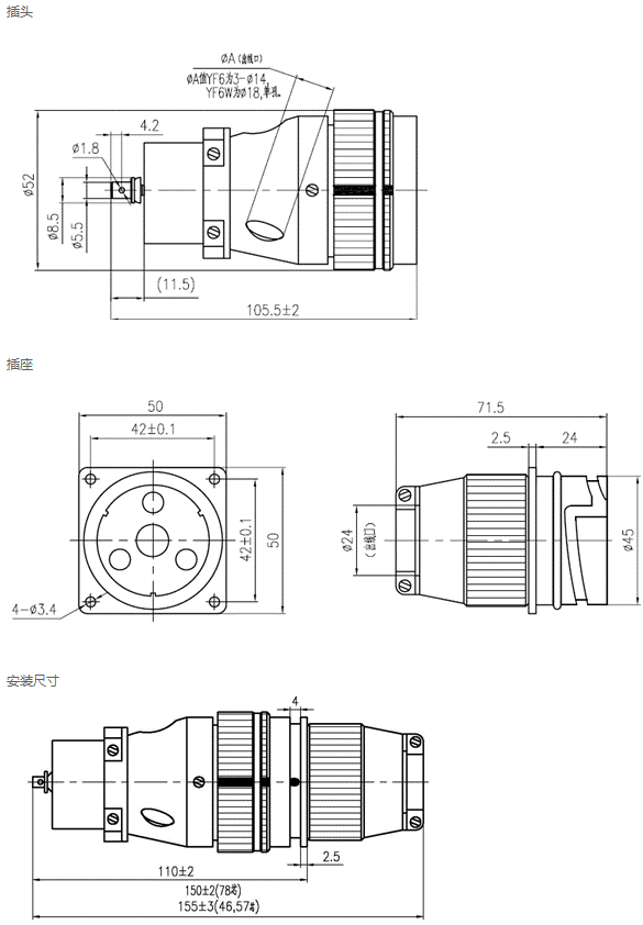 YF6-78:Q/Ag1.063.1-2003《YF6-78圆形防雨分离电连接器详细规范》