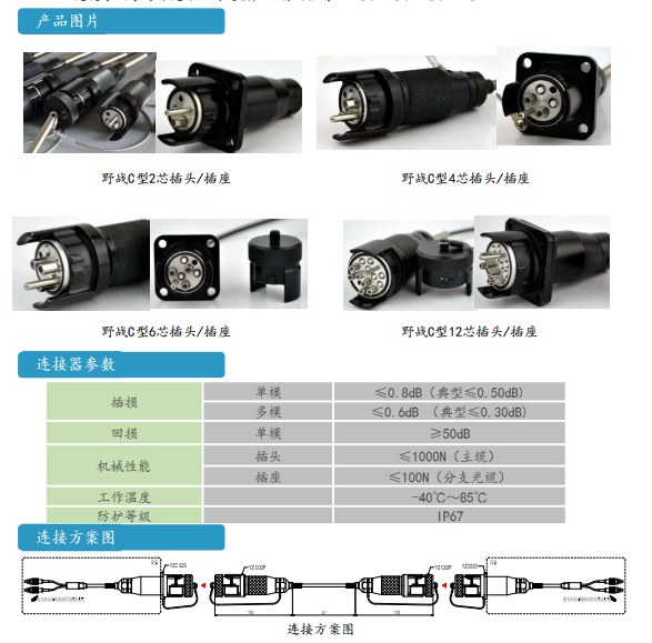 ● 连接器外壳采用铝合金氧化黑材质,且连接损耗小、可靠性高;坚固、防水、防尘、耐恶劣环境等特点
