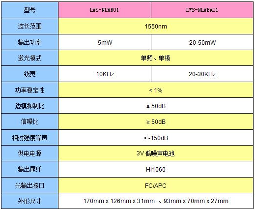 1550nm窄线宽DFB光纤激光器采用全光纤结构获得了高稳定性的单频激光输出。线宽窄至10KHz以下,集驱动、温控、致冷模块于一体并具有高速调制功能,调制频率可达数兆赫兹,信噪比大于50dB,低压3V供电,功耗小于2.5W,机箱小巧,方便携带,并采用多重防震措施,可满足优质光源、激光测距、激光雷达、传感器等多种需求。