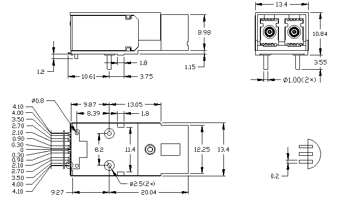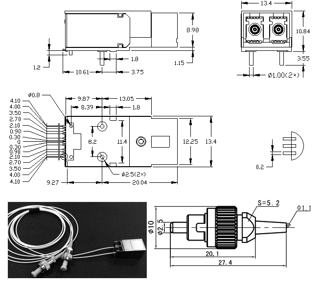 FTRS双纤双向超短型封装尾纤式FC接头- 1310nm-10Gbps-10km-工业级 |