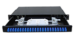 用途:用于光缆终端分支终接,19”标准结构,机架式安装,适用于FC、SC、ST、LC等适配器的安装使用,抽拉结构,便于操作。