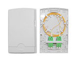 2口双联翻盖桌面盒,采用紧凑、易于操作的设计,为FTTH引入光缆和尾纤之间提供熔接或连接;可安装在室内、楼道、铁塔等多种场景,具有适应能力强、可靠度高等优势,可搭配多种光纤连接器使用,广泛应用到各大电信运营商。